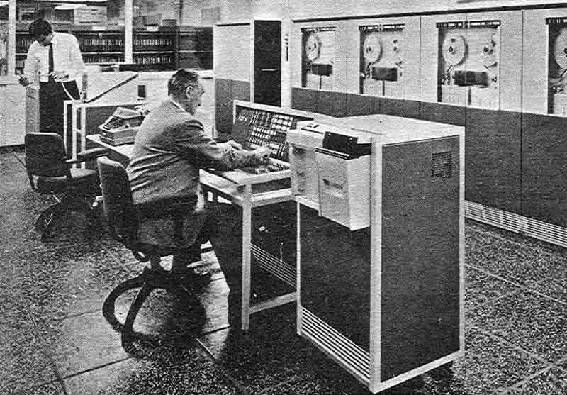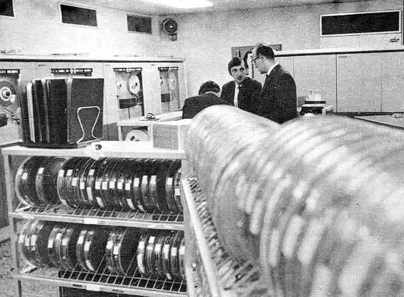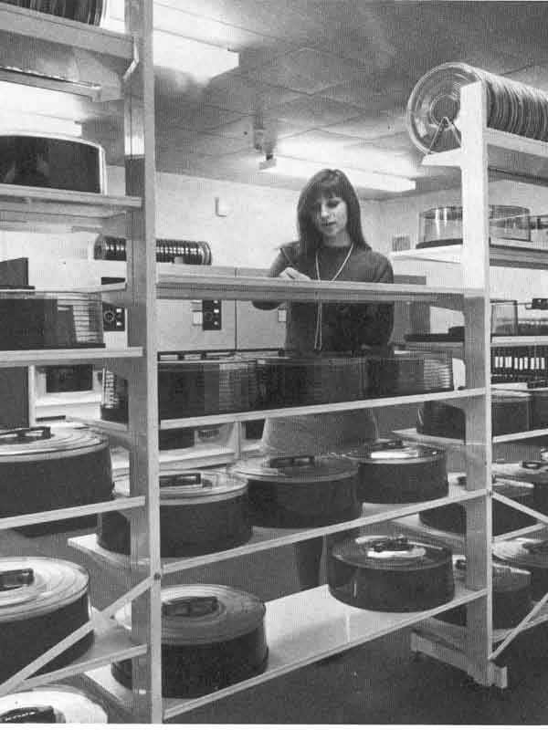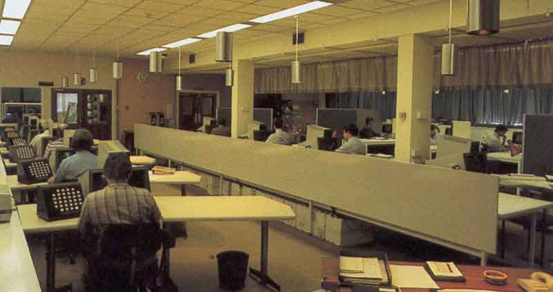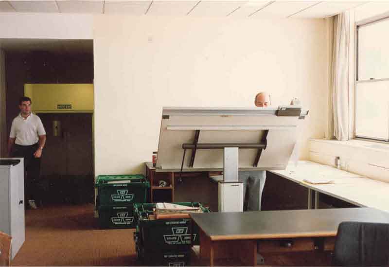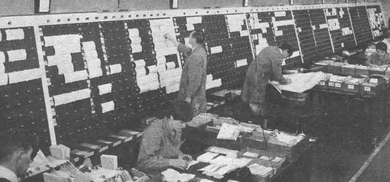 by a pulley and a counterweight. Behind this was a complex array of filing racks
