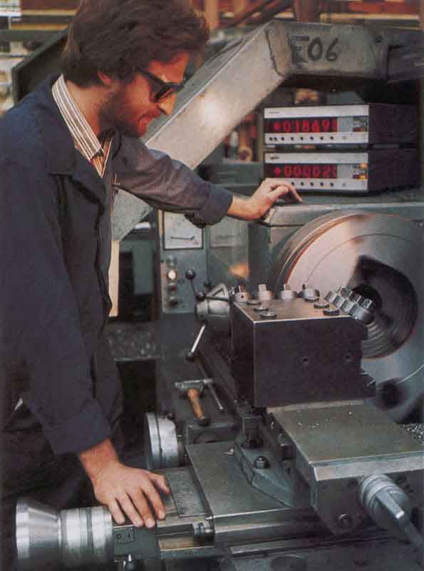 Early 1980s?: Foreman Derek Swallow with new Accurist 367 divider in Bakery fitting shop.