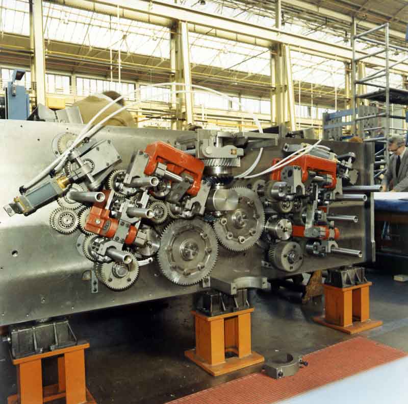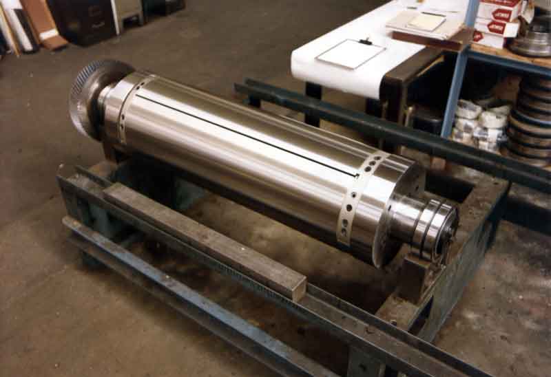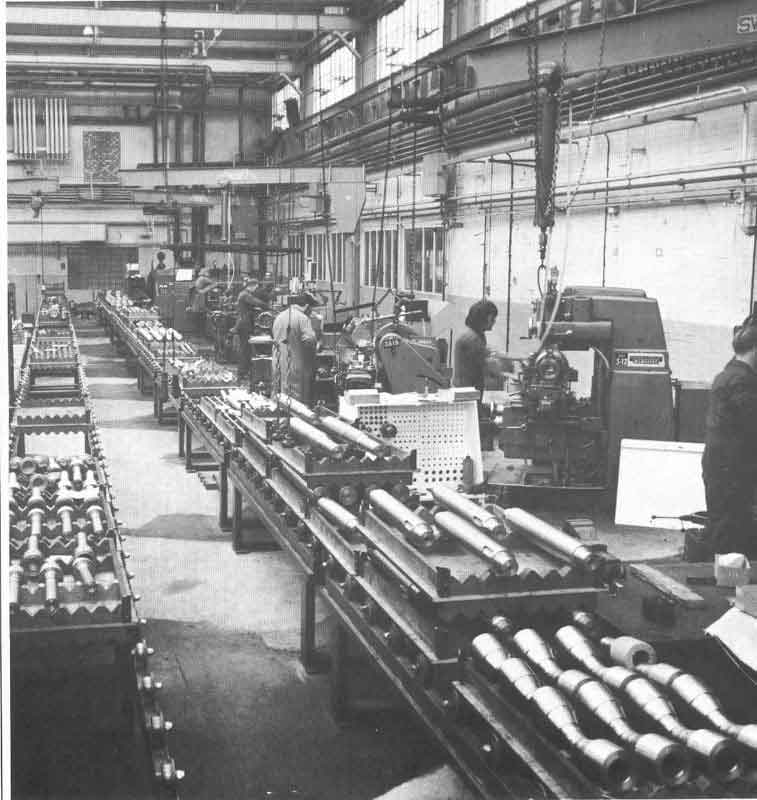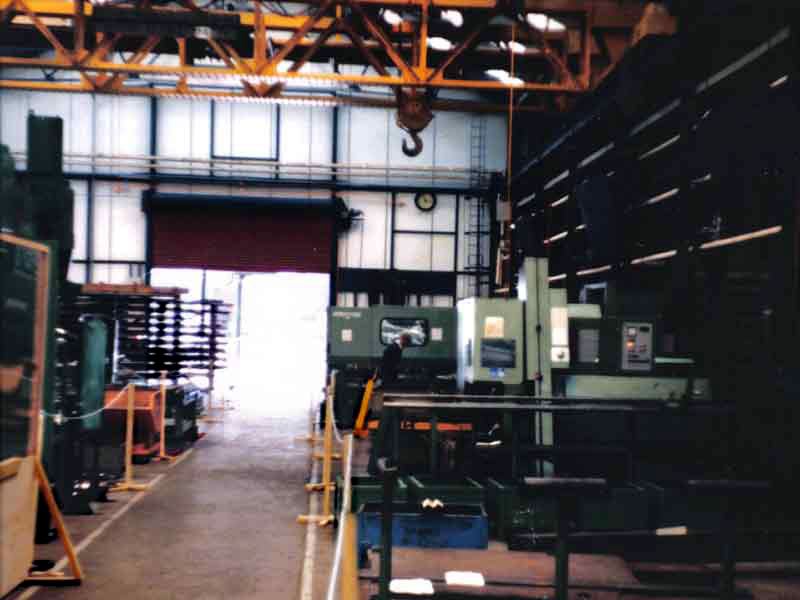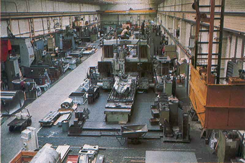 Erected in 1935 - this was the first (south end) bay of the Plate Shop. So named because it was where both during and after WW2, the famous L7040mm Bofors Anti-Aircraft Gun was assembled. Part of the bay was later used - from the mid 1970s onwards - to develop the Printing Division's innovative approach to the production of its G16 Printing Press Plate and Blanket cylinders. A one-piece solid steel forging had a unique welded stainless steel surface applied on a lathe before being ground, with its running bearings (high precision taper bore spherical bearings) fitted, and then dynamically balanced. (Seehere).