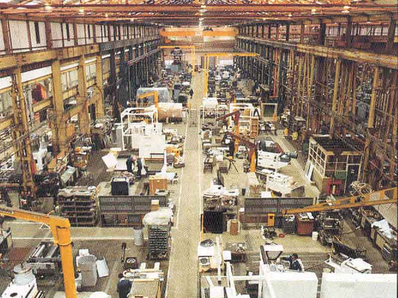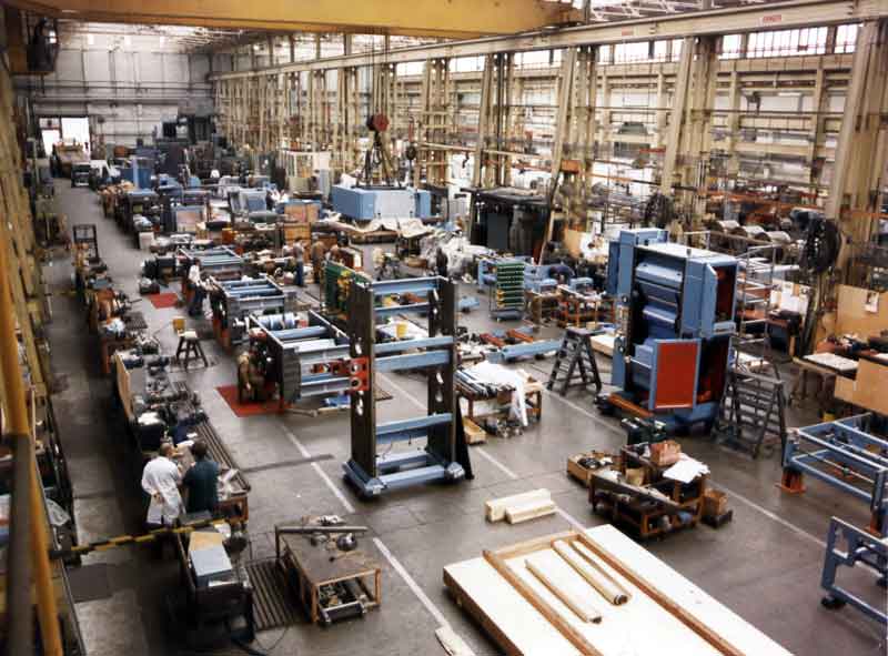 1988?: Looking West towards the main yard, G16 Presses being built in the Fitting Shop