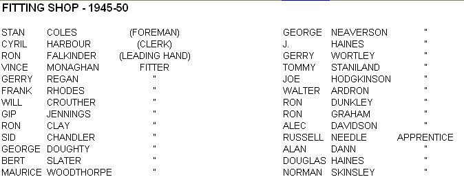 Alan Dann, who started his career at Baker Perkins in 1943 taking details of railway wagons as they entered the site, remembers some of those who worked in the Chocolate & Confectionery section of the Fitting Shop in the immediate post-war period (1945 - 1950):