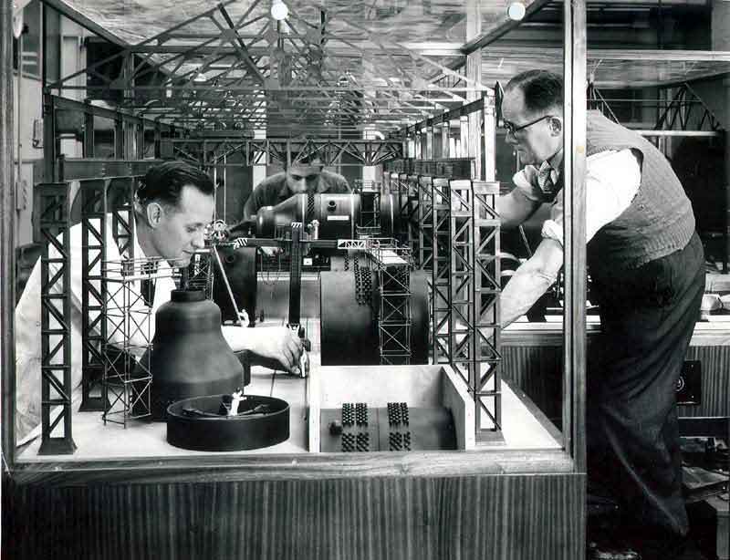 1960: Jack Randall with his model of Yates Welding Plant in Trawsfynydd Nuclear Power Station in N. Wales