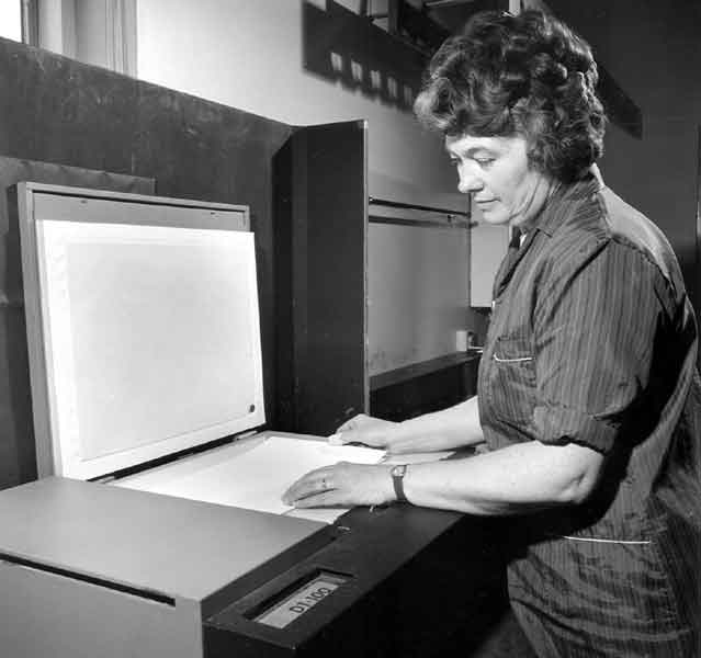 1974 - The Lithographic Department | Rene Bowman with the A-M DT100 Platemaker |