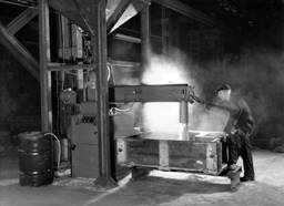 Most of you will recall Baker Perkins' involvement in the foundry industry which came to an end in Autumn 1984 with a management buy-out by Arthur Ferns, its manager since 1980. (See also - "The History of Baker Perkins in the Foundry Industry"). We have received some excellent photographs of equipment from that time, including this one - very moody, very atmospheric. Does anyone recognise this man? Sadly, however, while I am able to differentiate between biscuit dough and foundry sand that is about as far as I can go. Is there someone out there who could identify these pieces of equipment, please? (See also HERE).
